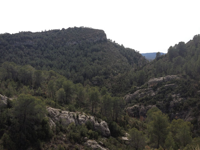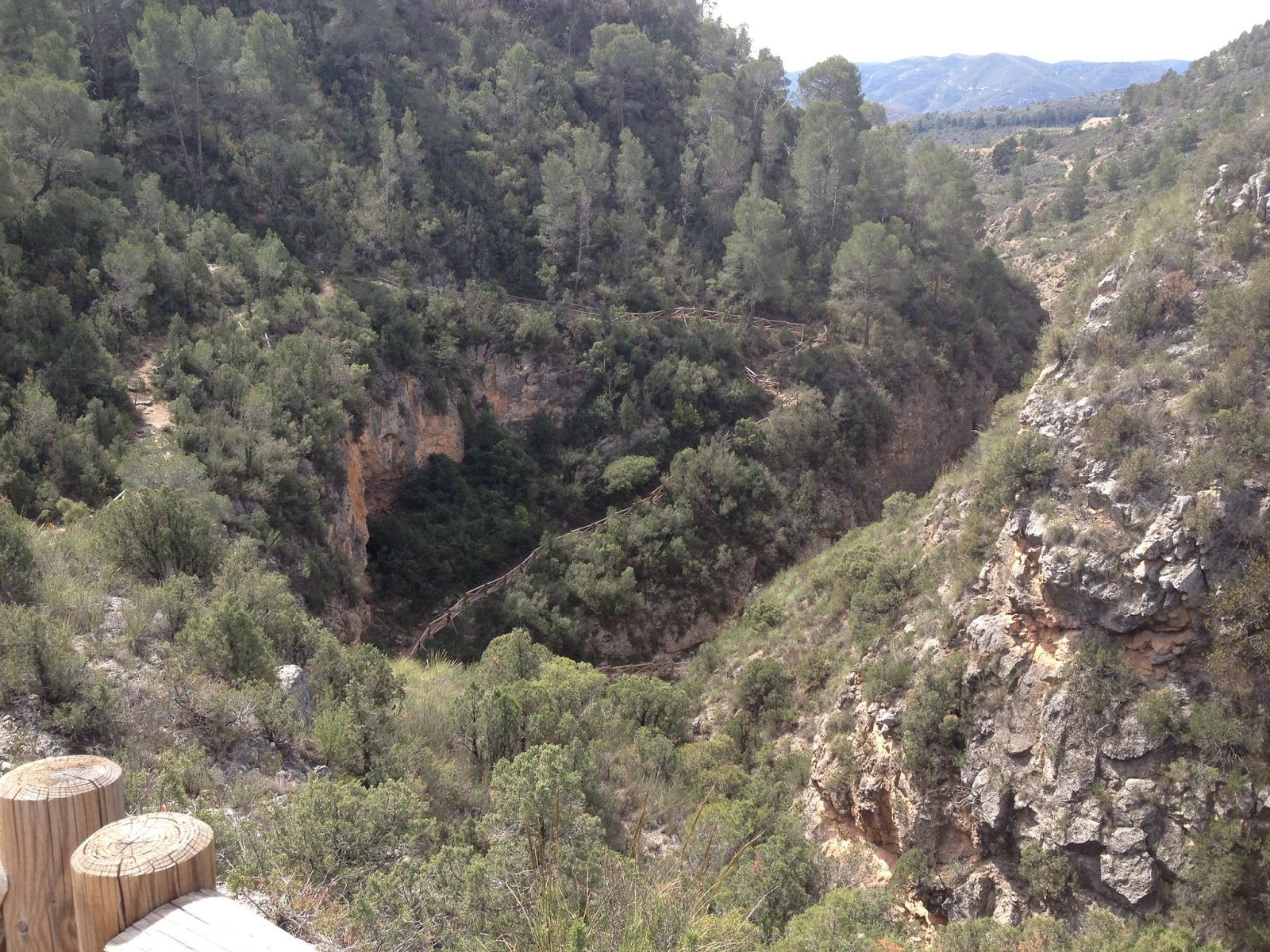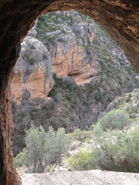 Luego tienes que continuar el camino subiendo la montaña hasta que llegas al primer mirador desde donde ya ves la peña cortada y eso te anima a seguir para llegar cuanto antes. Es un buen momento para recuperar el aliento un instante y disfrutar de las vistas del barranco.