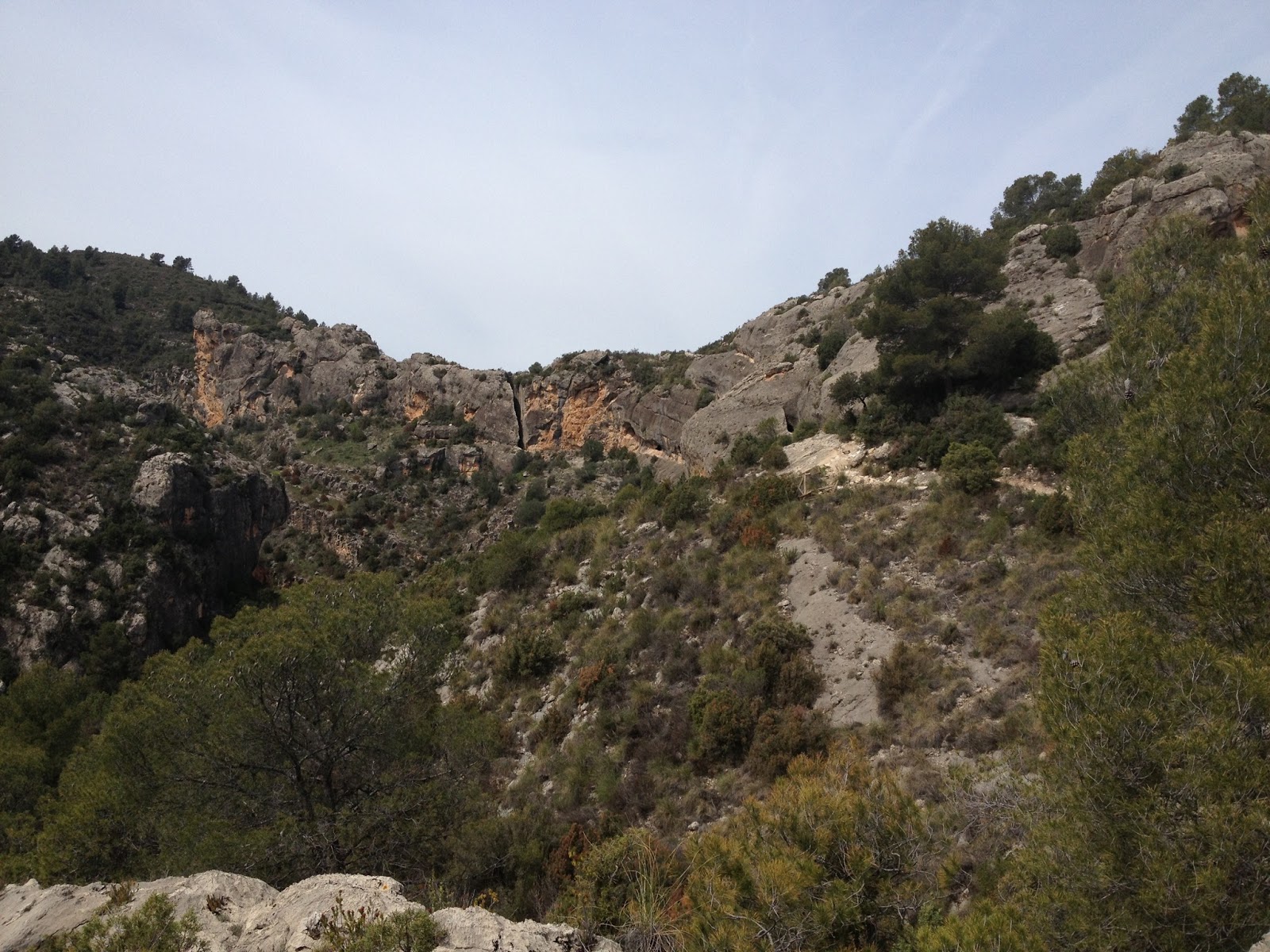 Cuando sales de las cuevas, llegas a la Peña Cortada que es bastante impresionante por la altura que tiene. Antes de hacer la excursión leí un comentario de alguien que había hecho la excursion y que se preguntaba qué por qué en ese tramo habían cortado toda la roca en lugar de seguir con la cueva. A mi me pareció que habían intentado seguir con la cueva pero que ahi se les derrumbó ese trozo... pero vamos, es una apreciación personal.